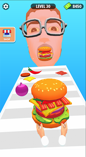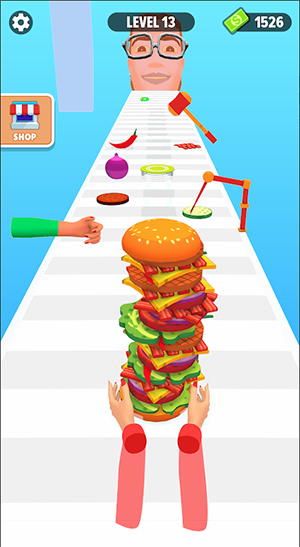 您的任务是在正确的时刻点击或滑动,将每种成分堆叠到汉堡奔跑者中不断增长的汉堡上