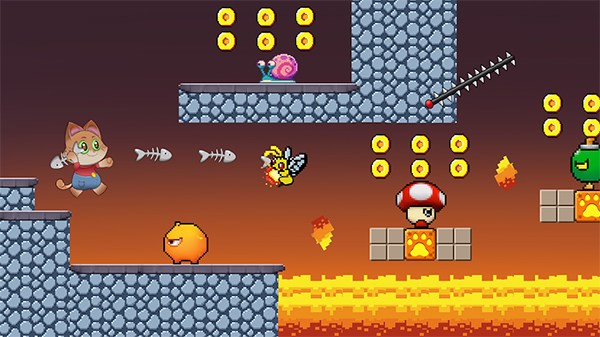 猫的世界Cats World是一款老式经典平台动作冒险游戏,充满童年回忆。加入游戏,帮助猫穿过神秘的丛林,跃过危险的障碍,击败邪恶的怪物并成功拯救公主。游戏完全免费,具有高分辨率图形,加入不同主题世界,体验不一样的冒险乐趣。