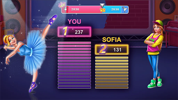 舞力对决:芭蕾与街舞之争是一款有趣的跳舞模拟游戏,成为一名舞者,选择加入芭蕾舞团或街舞团,在最盛大的舞蹈对决比赛中赢得胜利。尝试编排你自己的舞步, 穿上最炫酷的舞蹈服装,做一个惊艳的发型,赢得比赛的同时获得全场的欢呼声。