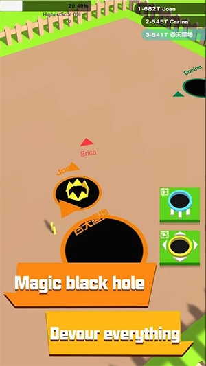 彩洞农场城市Color Hole Farm City是一款黑洞吞噬多人io乱斗游戏,玩法很简单,控制不同颜色的黑洞来吞噬农场和城市中的一切,以此来变大你的体型,直至吞噬所有。注意对手的黑洞,大彩洞吞小洞,完成生存挑战并生存到最后。