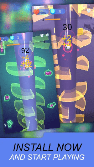 螺旋冲刺Helix Rush是一款刺激且令人上瘾的球类动作街机游戏,测试你的反应力。在游戏中,玩家需要控制小球不断向下穿越,粉碎平台的同时避开致命的彩色斑点。越到后期速度也会越快,这极大考验玩家,快快下载体验吧!