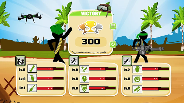 你负责领导一小群火柴人士兵。每个人都有不同的特点和武器