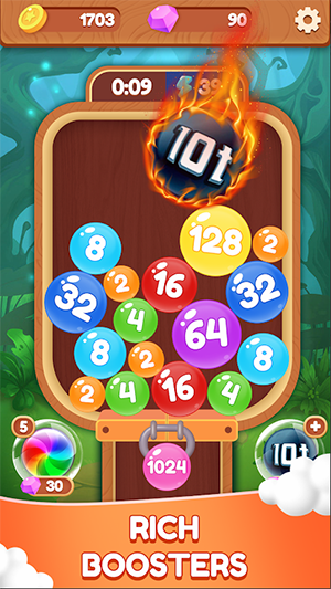 2048幸运球是一款2048数字合并消除游戏,结合数字和球元素元素,拥有简洁的画面和轻松的玩法。游戏并没有任何复杂的规则,玩家只需通过简单滑动来放置掉落的数字球,瞄准具有相同颜色和数字的球来进行合并。