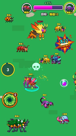 模拟玩法设置,在合成过程中,昆虫的外观也会发生变化。