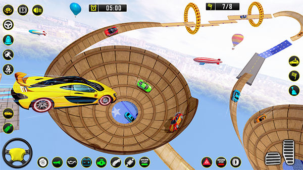 提供多种汽车特技比赛选项,驾驶汽车游戏包含各种不可能的赛道