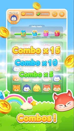 胖乎乎的花园ChubbyGarden是一款以可爱动物为主题的益智三消游戏,进入梦幻般的花园,和可爱的胖乎乎动物们一同享受消除的快乐。游戏玩法轻松有趣,玩家可以通过适当交换位置来匹配三个相同的动物来合并成为一个更高级的动物。