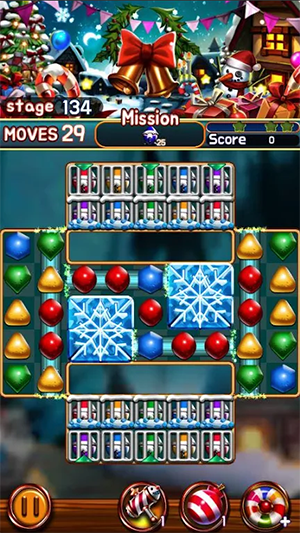 进入一个白雪皑皑的梦幻村庄之中,和圣诞老人一同完成三消挑战,移动宝石来匹配三个相同颜色宝石来完成消除