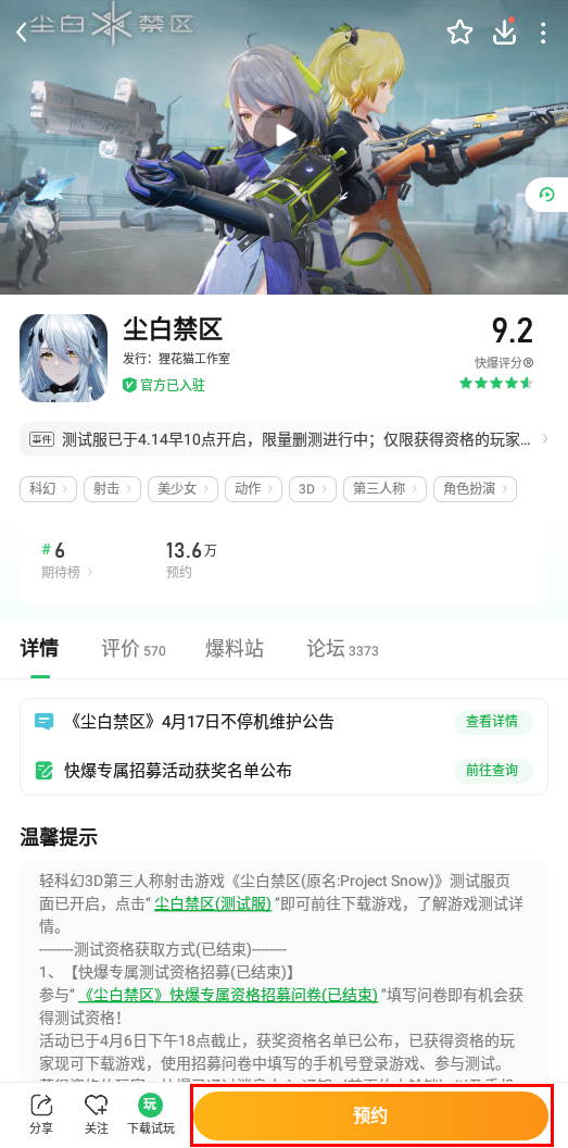 当然对于提出意见这点,官方也很乐意吸取一些玩家的建议持续优化游戏的体验。有试玩过的小伙伴们有什么好的想法与建议,也可以前往快爆论坛在《尘白禁区》游戏官方评论区中提出哦~