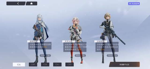 战斗中,我们可以根据不同角色所带来的加成,搭配编制一支最多三人的小队,出击战斗完成任务。因为连携技能的设计,我们在战斗过程中会有一半的伤害要依赖于角色的技能进行。