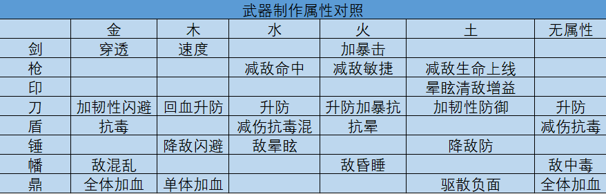9、制作武器的时候不要一件放入,以下是属性装备对照;