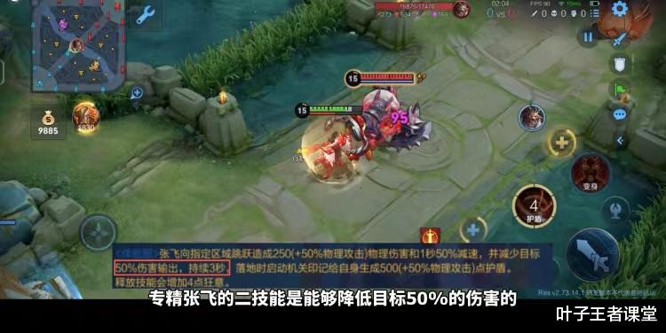 也就说只要有一定的冷缩加持,张飞就可以无限的给敌方施加这个降低50%伤害的debuff,更加重要的是一二技能还是一个范围性伤害。