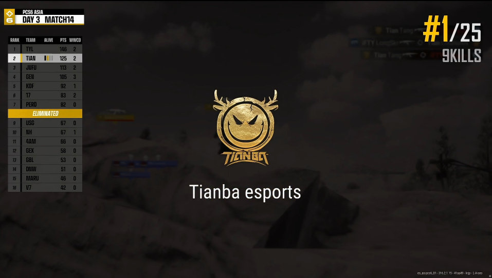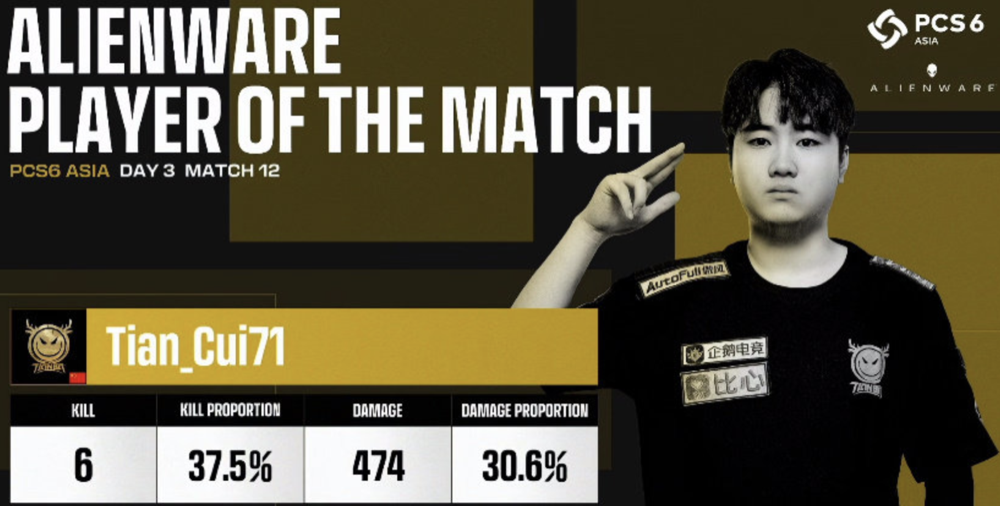 说起天霸,本周赛事他们的表现突出个低开高走,要知道首日的天霸排名第十四,5局13分的战绩足矣说明他们的低迷。但是毕竟豪门劲旅,这调整能力可见一斑,通过昨日的两鸡,天霸一举将积分追至126分并强势锁定榜二,这份爆发力确实令人震惊。