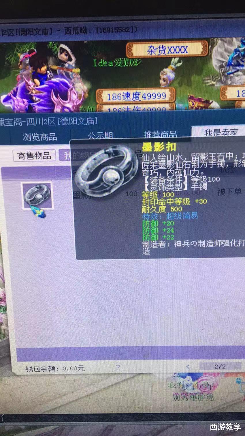 一个100级的手镯,上排封印命中等级+30,下排是三防御,分别加20/24/22,还带着特效超级简易,这个妥妥的勇武神器了,这个价格基本上在18-20W附近,但是不知道好不好出,因为玩89级的玩家还是比较少,只有一些在蓬莱岛服务器,但是还是希望这个兄弟可以尽快出掉,而且恭喜这个兄弟,运气真的非常不错!