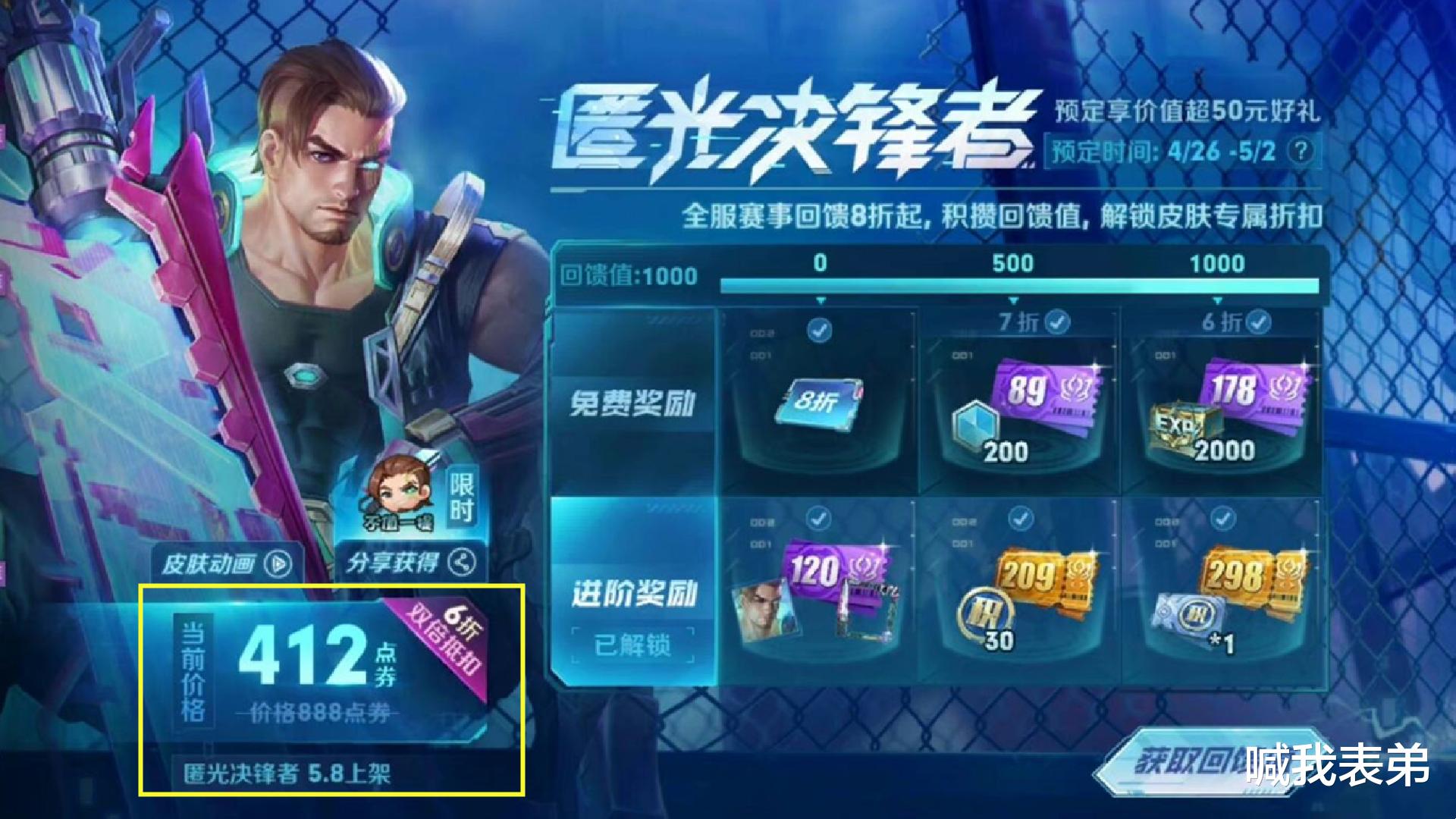 再根据预定活动的描述能得出,玩家只有在参与了皮肤的预定活动之后,后面皮肤正式开售时才能以最低的412点券在商城里面直接购买到。并且参与了预定的玩家还会获得荣耀积分和积分夺宝抵扣券这类不错的道具。