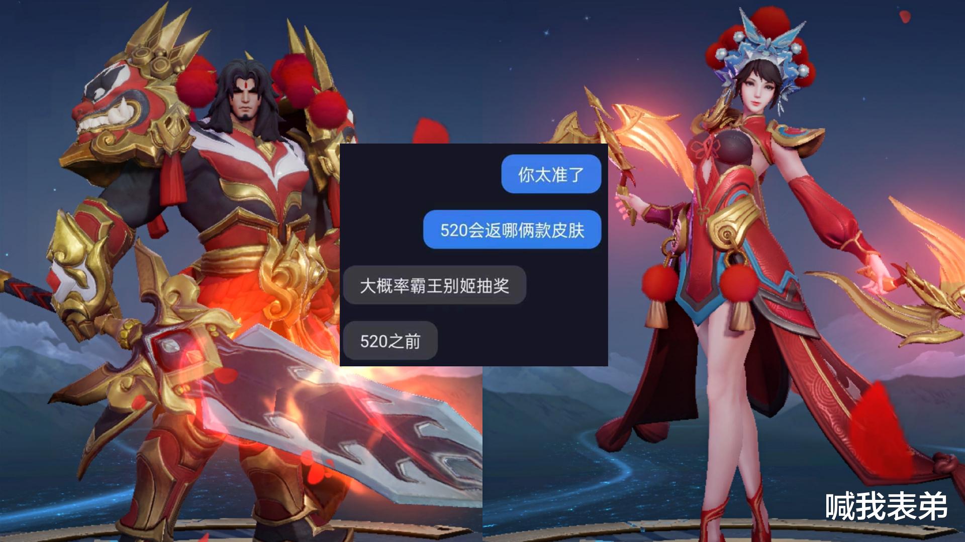 再根据上次霸王别姬这两款皮肤的返场官方明确表示了不会再进行直售返场这点能得出,今年的520期间,玩家如果想获取到这两款皮肤的话,是会跟去年同时期凤求凰夫妇的返场一样,需要通过抽奖的形式进行获取的。