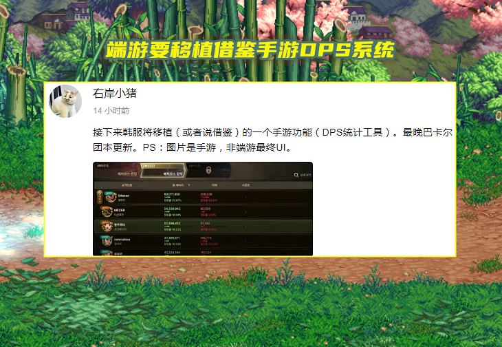 移植了DPS统计系统,本质上来说,算是一件好事,能分清楚队友承担输出伤害。但结算过于详细,让“混子”划水难受,身份陡然暴露了,矛盾进一步加剧。要知道现阶段韩服端游中,无任何DPS工具,队友出多少力气,根本就不知道,划水变得安逸,隐藏着相当深。