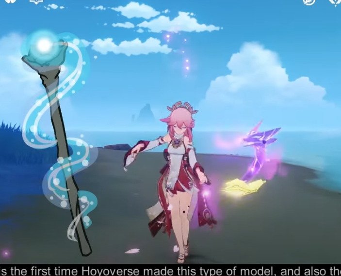 This is the first time HOYOVERSE made this type of model, and also the rumor says, she carries a small magical staff just like Yae Meeko.