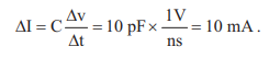 典型CMOS栅极与PCB走线和通孔结合在一起,将产生约10 pF的负载。如果无隔离电阻,1 V/ns的逻辑输出压摆率将产生10 mA的动态电流: