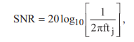 唯一的噪声源来自均方根采样时钟抖动tj。注意,以上公式中的f是模拟输入频率。通过简单示例可知,如果tj = 50 ps rms,f = 100 kHz,则SNR = 90 dB,相当于约15位的动态范围。时钟抖动对SNR的这一影响在教程MT-007中有详细论述。不过,在大多数高性能ADC中,内部孔径抖动与采样时钟上的抖动相比可以忽略。