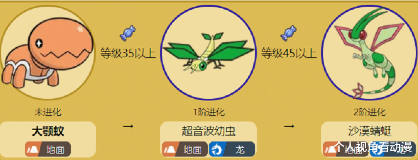 大颚蚁原本是虫组地面系的宝可梦,然而在进化后却逐渐改变了自己的习性和形态,有些类似于现实生活中的“变态发育”了。比如说在进化后,它可以飞行等等,甚至是在进化到最终的沙漠蜻蜓后,居然还成为了龙属性就真的让人感觉匪夷所思,明明长得一点也不像龙的蜻蜓是龙属性,长得非常像是龙的喷火龙则和龙属性一丁点关系都没有,说真的,有时候官方的设定也确实让人感觉一头雾水。