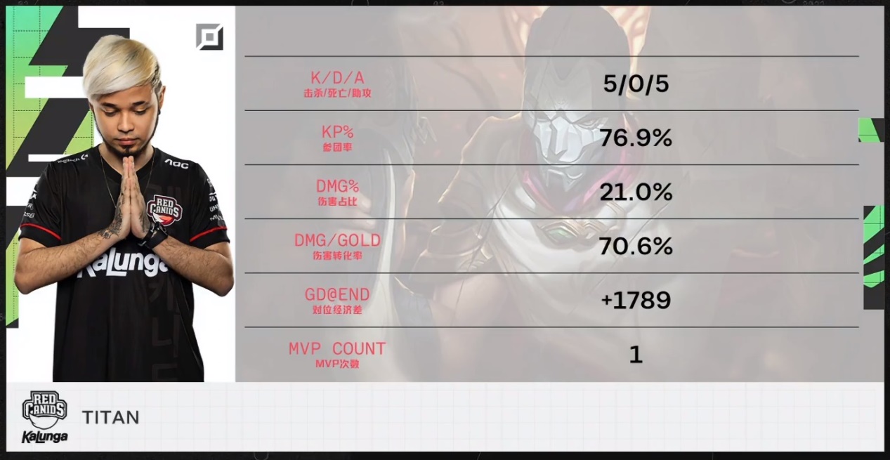 RED昨天表现最出色的两个选手,一个就是这个接受采访的Titan,他是成为了MSI首日最高光选手,在使用烬的情况下,打出非常漂亮的三枪,第一枪是在中路配合队友,快速拔枪开R一枪精准击杀发条,三枪之后获封巴西狙神称号。