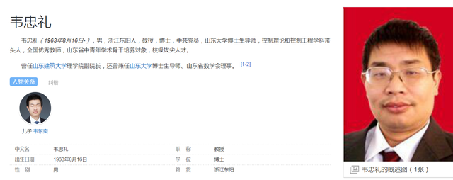 除此之外,韦东奕的家境也很不错,他的爸爸叫韦忠礼,现在是山东建筑大学教授,也是山东大学的博士生导师。其实韦神爸爸也是“韦神”,他也在数学领域取得了很不错的成绩。