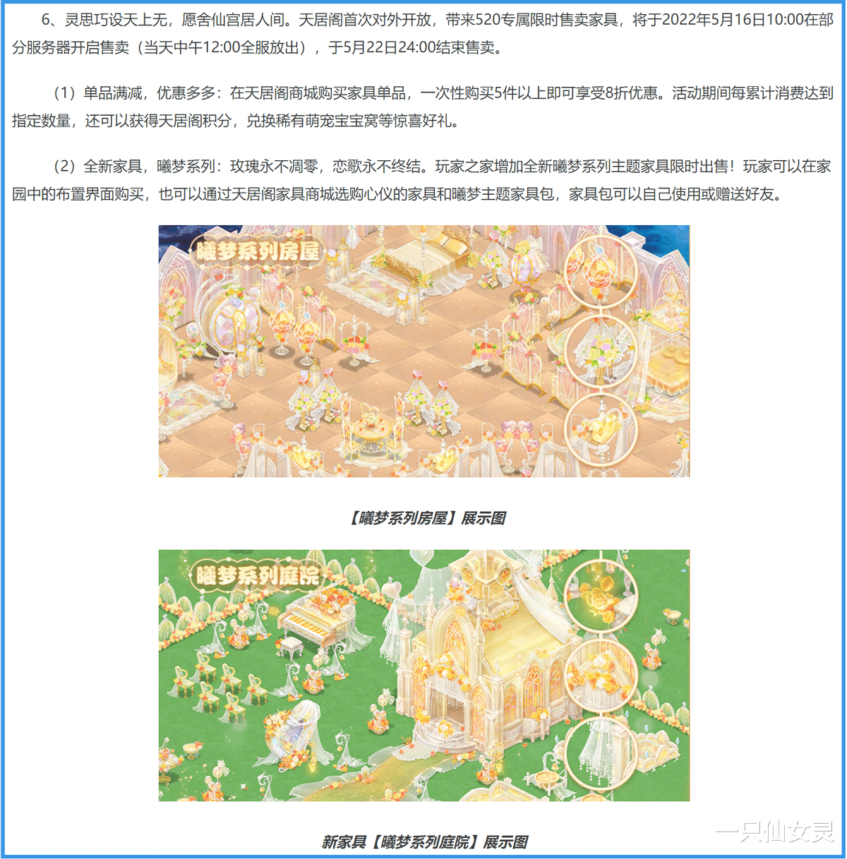 先拿刚结束的的五一活动来说,别看还是和往年类似的又臭又长还没奖励的活动,但是新玩法琳琅花园可是实打实的没有仙玉不能玩,并且特卖商城也是把价格拉满,新时装新坐骑新家具全都不能少。不过这还没过几天,策划又已经开始提前上线520活动了,具体有多离谱,跟着小灵一起来瞧瞧。
