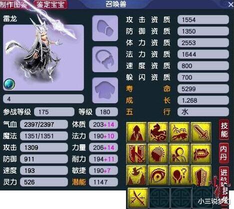 雷龙是后期又上线的一只召唤兽,而且雷龙的必带技能的数量是非常少的,所以,将雷龙的技能格子提升到13个本身就很困难,更别说还打上力劈华山跟浮云神马这两个特殊技能的兽决了,所以,小编感觉上面的这只雷龙应该是现在梦幻中唯一的一只13个技能,还打了打神马力劈的雷龙。