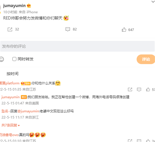 mayumi说,这位帅哥选手很快就很跟大家互动了,粉丝很好奇,询问mayumi跟这位选手是什么关系,难道两人曾经做过男女朋友?mayumi表示,他们现在只是朋友,自己正在帮忙创建一个账号,方便选手跟LPL观众互动,可他们的电话不好创造新号,只能让mayumi暂时当选手的“传声筒”了。