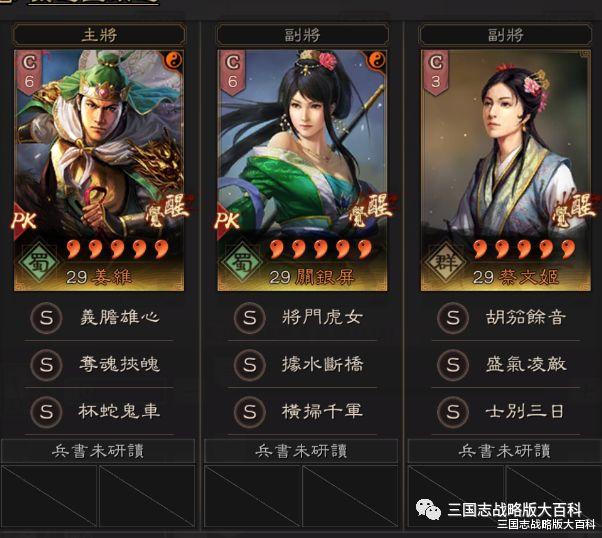 解析:横扫千军不是必带,可以给虎臣或者蜀枪使用。如果不需要,可以白眉换横扫千军,群伤拉满,控制垫满即可。