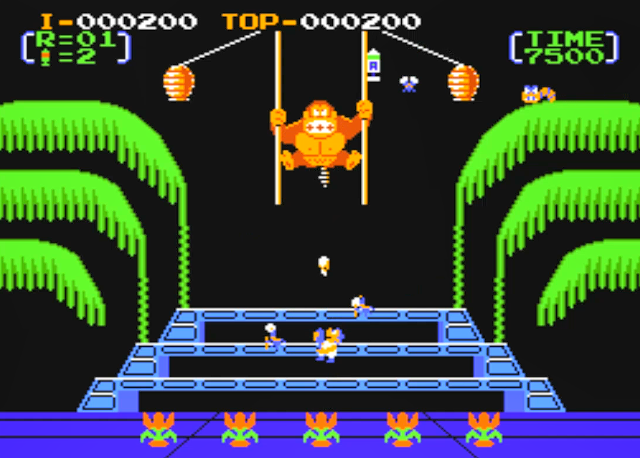前几天说了下红白机上的《大金刚》系列前两部作品,游戏虽然简单,却是很多玩家的童年记忆,今天来说说《大金刚》的第三部作品,这款作品相对于前两部作品来说,改动还是非常大的,除了那头愚蠢的猩猩外,很难把这部作品和前面两部相联系起来。