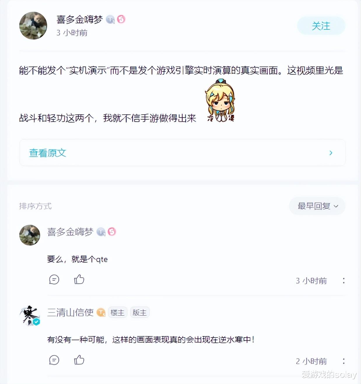 因为实机演示视频太过“魔幻”,很多网友都不敢相信《逆水寒》手游真的能达到这种高度,甚至有人信誓旦旦的表示:光追什么的我先不谈了,仅视频里轻功和最后战斗效果,我就不信手游能做得出来!而面对这样的质疑,《逆水寒》手游官方却非常自信的称:有没有一种可能,这样的画面表现真的会出现在《逆水寒》中!将网易的技术自信体现的淋漓尽致。