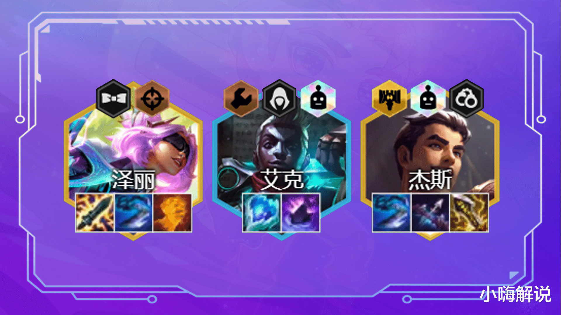 阵容属于后期找杰斯的节奏,因此拉8拉9人口非常重要,杰斯是开7发明的重点。前期尽可能的走连胜,可以选择在中期跳到8人口抢先找杰斯开出7发明龙。
