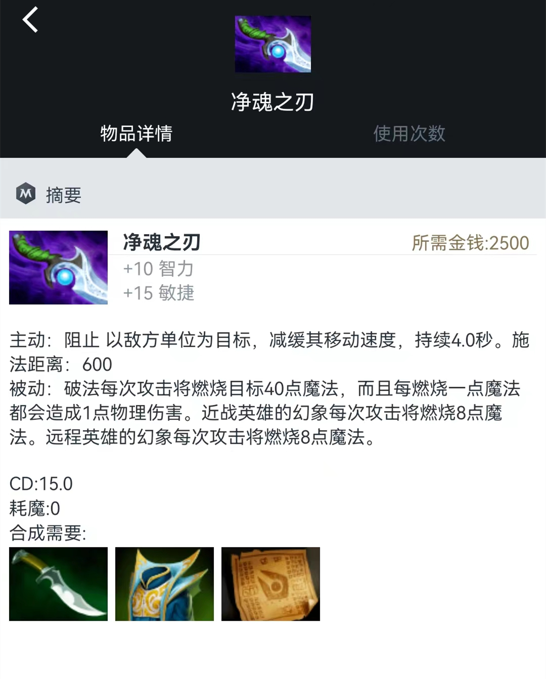 相信大家都知道,自从散失改版(效果削减的同时价格大幅下降)后这件道具便成为了一件前中期的打架神器,无论是主动效果的减速还是被动效果的削蓝与敏捷加成对于许多需要在前中期打架的敏捷系英雄来说都是相当实用的。