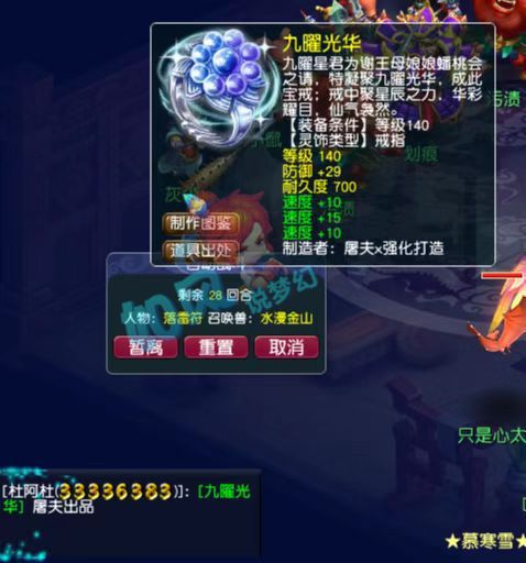 沂水雪山服务器新出140级三速度戒指,初始速度达到了35点,属性非常不错。