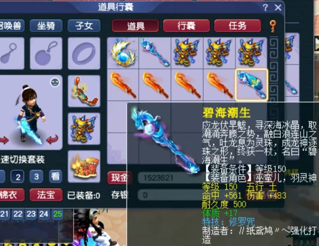 虽然鉴定过程没有成就点,但鉴定出来的蓝字还不少,又有一把附加特技的武器,160级棒子武器,伤害483,命中561,单加体质17,附加修罗咒特技。