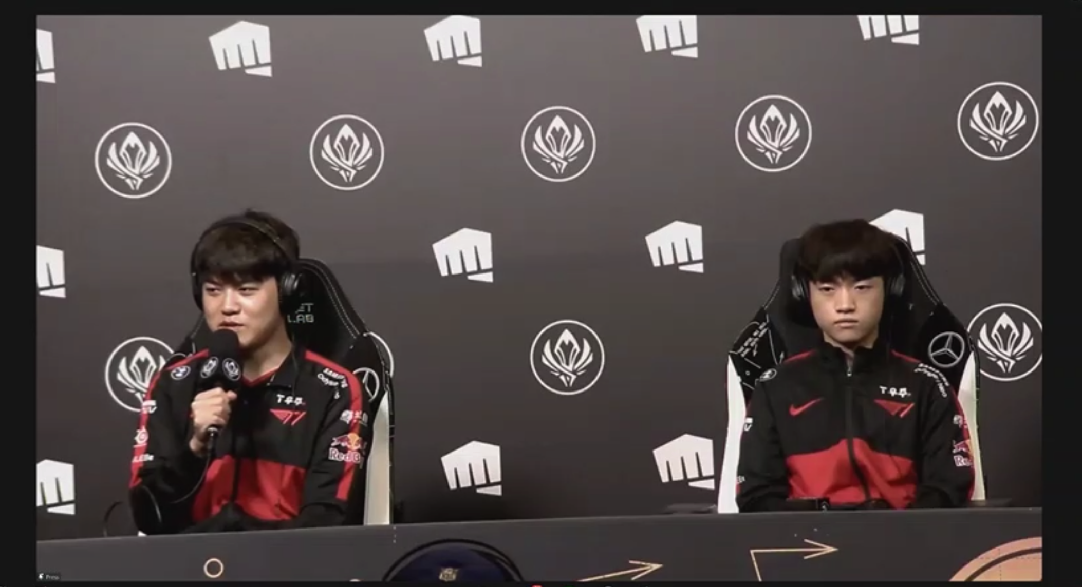 Q:问T1两位选手,之前的比赛中,你们是全胜的T1,半决赛再次面对G2,你们是否会有更多的压力呢?