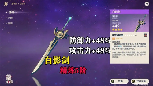 白影剑副属性提供不错的防御力,对于能够享受到防御增益的角色来说是很不错,但其缺点也明显,就是特效的叠层需求虽然提供了角色更高上限,但是对角色锁面板能力提出抗议。